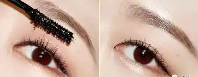 2、用棕色染眉膏,在眉毛上涂抹,将眉毛之间的空隙填满,塑造更有型的眉毛。
