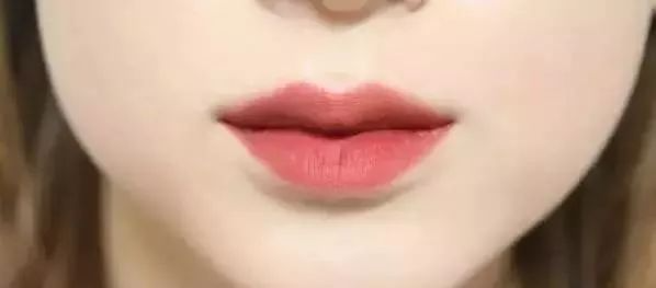 8、涂上偏橘红的豆沙色亚光口红。口红一定不能忘,提升气色就靠它了。