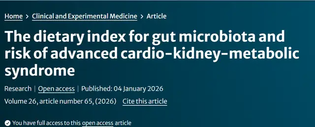 为了寻找一种简单、可及的方式,能在日常生活中帮助我们延缓甚至阻断这一多系统共病的进展。科学家将目光投向了人体的“第二大脑”——肠道菌群。郑州大学第一附属医院团队一项发表于《Clinical and Experimental Medicine》的研究,首次在大规模人群中证实:通过一套特定的饮食评分(肠道菌群膳食指数,DI-GM)来“喂养”有益菌,能显著降低晚期“心血管-肾代谢综合征”(CKM)的风险,并精准锁定其中贡献最大的四种“明星食物”。