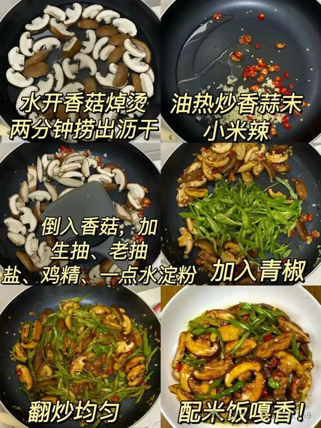 香菇、青椒、蒜末、小米辣、生抽、老抽、盐、鸡精、水淀粉