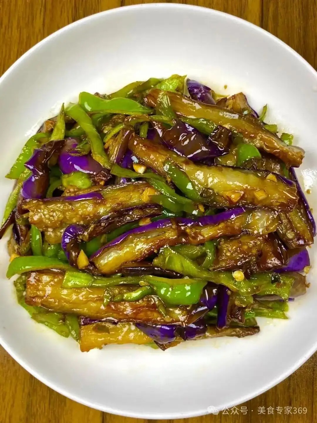 2.热锅且多放些油,接下来将茄子条倒入锅中,以小火进行煸炒,直至茄子条变得柔软,其边缘微微焦黄。