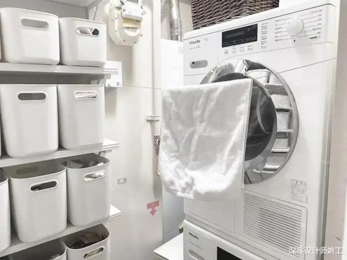 这是改造后,2㎡不到的空间,既是储物间也是洗衣房,一地两用让每1㎡都充分发挥出了最大价值。下面来看看,对于咱整理,能不能从她那儿获得一些启发。
