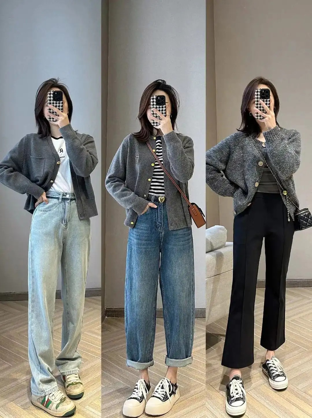 常规短款针织开衫叠搭直筒裤,简约干练又不失文雅,精致洋气的小款针织开衫,上身效果贼有氛围。