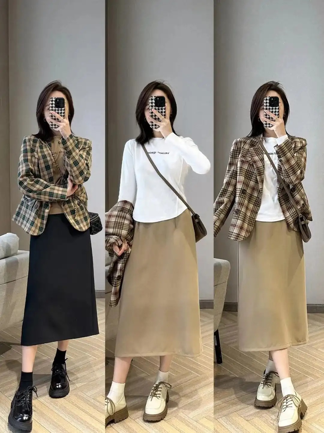 因为像博主身上这类素色格纹衬衫,穿上身效果会大大因为视觉效果,在氛围感的呈现上,也会让人大失所望,真是应了那句“穿了还不如不穿”的话。