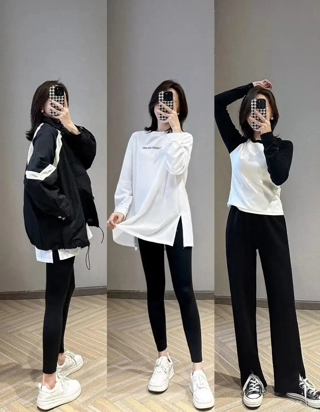 喜欢极简模式的姐妹,也可以选择这类穿衣方式,纯色长袖+长裤,简洁干练又实用。