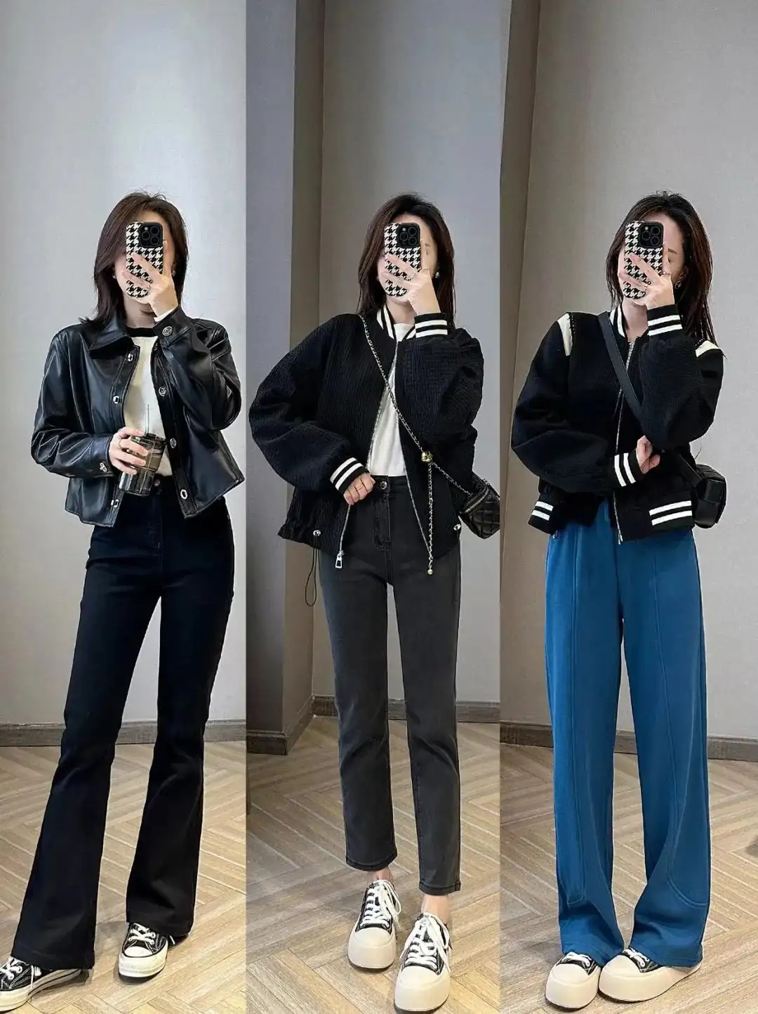 身材好的姐妹,可以用廓形长袖叠搭纯黑色紧身裤,上松下紧的穿衣方式展示大长腿,文雅秀气又符合职场穿衣氛围。身材一般的姐妹,可以用常规短款长袖搭配纯黑色直筒裤,上短下长的组合方式,精气神十足。