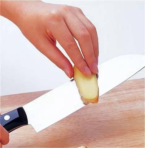 菜刀上有肉腥味或者其他味道很不好闻,拿生姜在菜刀两面多擦几遍,异味即可消除,或者用醋擦效果也很好。