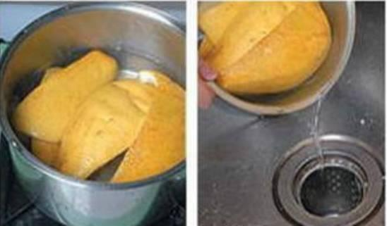 将柚子皮撕成块,放进锅里,再倒入清水,煮大约十分钟。之后,将煮好的热柚子皮水倒进下水道,异味就会消失不见。
