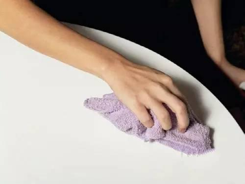将盐撒在餐桌表面,再将色拉油滴上几滴,用刷子轻轻刷,能除污渍。
