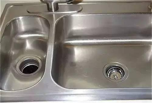 用湿抹布沾上清洁剂擦洗碗池。若有擦不掉的积垢,用浓度低的醋水再擦即可。