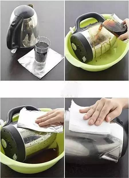 将电水壶放到盆子里,倒上可乐,拿锡纸多擦几次,直至把水垢都擦掉,再拿厨房用纸擦干净就行了。