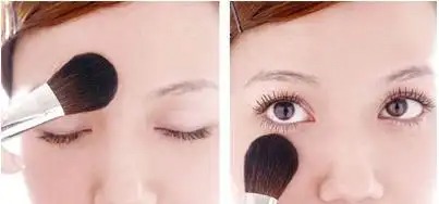 ★step5.选择浓密型的睫毛膏,沿着睫毛根处描绘出浓密的睫毛效果。 ★step6.再使用眼影刷 沾取带点咖啡粉色的眼影,刷在上下眼尾1/3处。