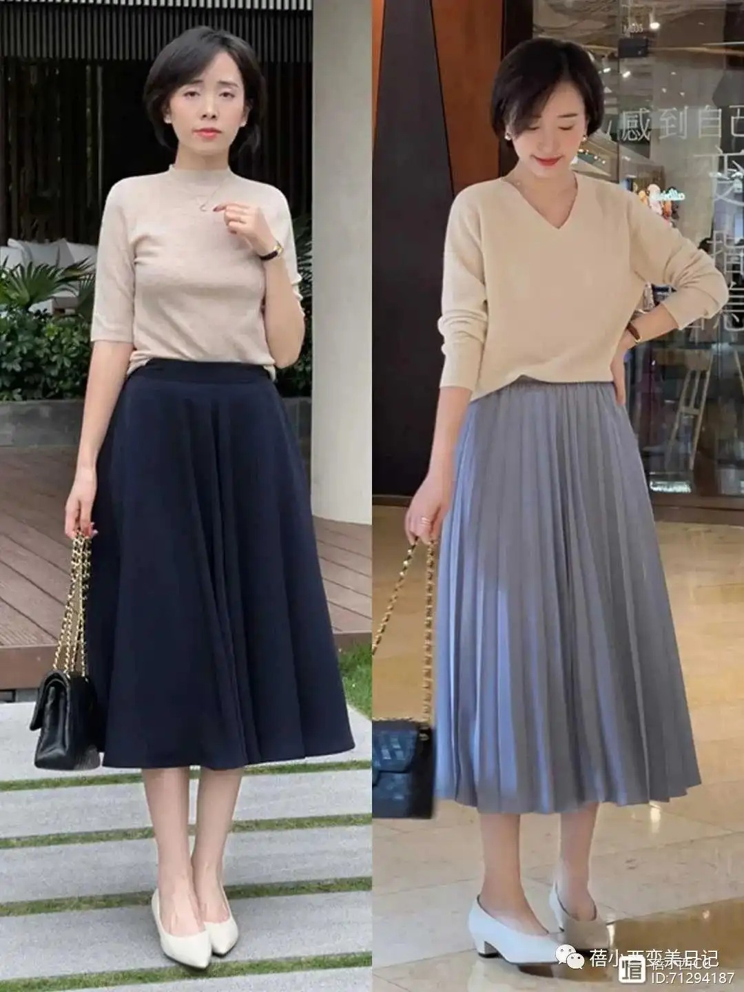 针织衫配半身裙