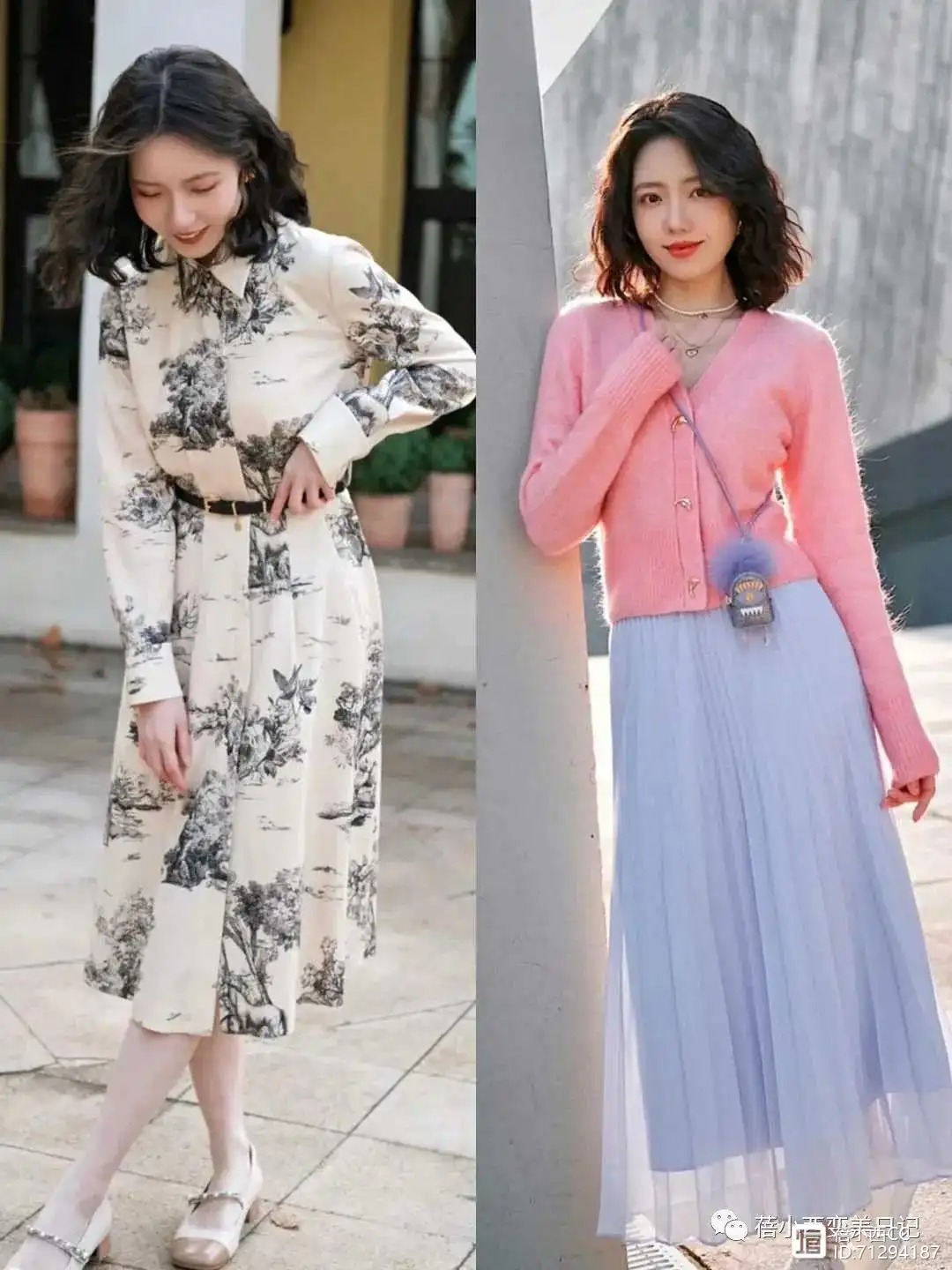 针织衫配碎花裙