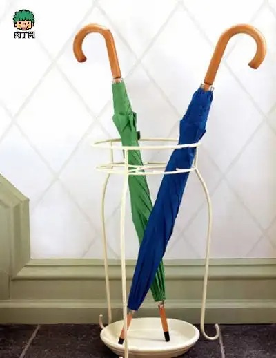 雨伞也有固定的收纳器皿了,它不是现成品,而是由盆栽立架和陶瓷托盘两样东西组成。分别用金属专用涂料和瓷器专用涂料统一它们的颜色,直接立在门口,你就再也不用担心滴水趟得到处都是。一般家里的雨伞都会撑开晾干,很占用空间,这个伞架非常巧妙地利用了花盆和盆栽立架,建议放在玄关处,也有简洁的装饰作用。
