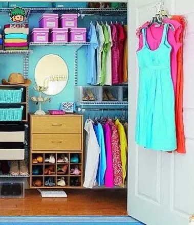 衣物收纳,这是收纳中的重点。我们可以把漂亮、使用率效高的衣服放在醒目的地方。或是把衣服按照种类收纳,把T恤、衬衫、长裤、短裤、裙子加以归类整理。整理好之后,在每次决定穿什么时,打开衣柜迅速就能找到合适当天的衣物。
