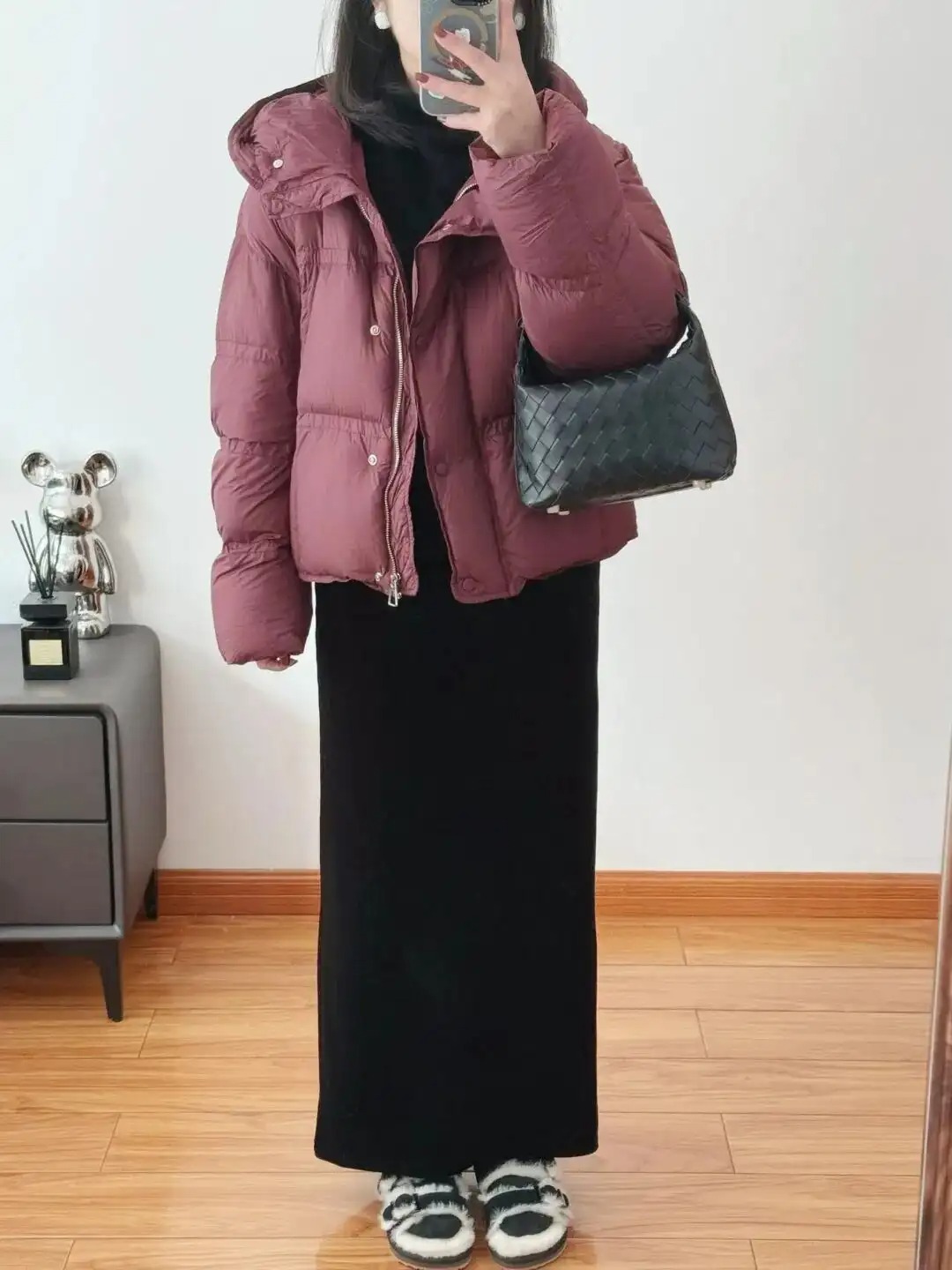 最近写了不少关于羽绒服的穿搭,要问我最符合“我”气质的穿搭,我肯定会推荐“羽绒服+裙子”,特别是短款羽绒服。而且今年相比往年来说不是特别的冷,搭配裙装正合适。