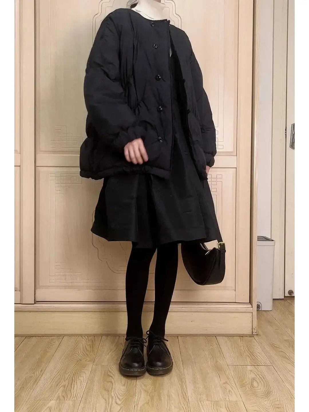 说句不夸张的,搭配容错率高到离谱:不管你选纯色连衣裙还是印花连衣裙,纯色羽绒服还是带点设计感的印花羽绒服,都能闭眼搭。哪怕材质和配色稍微差点意思,靠单品的款式就能弥补大部分瑕疵。