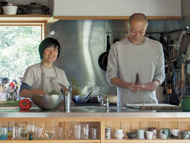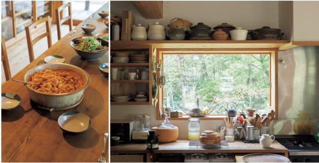 大谷夫妇和三个女儿一起住在滋贺县信乐的深山里,日子过得很安逸。他们俩的大部分时间,都围绕着厨房展开。厨房里有两个大食器架,桃子笑说它们是这个家的灵魂。