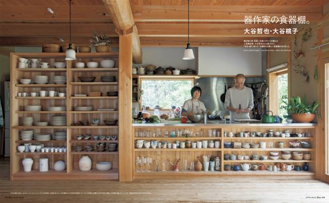 大谷哲也说:“我们认为收纳器物最重要的原则是要摆在看得见的地方。一是看到自己做的东西整整齐齐地摆在那儿,会很开心,这能激励我们能继续创作。二也跟我们心中食器的定义有关:用来盛放料理的时候自然是要美的,但它单单摆在那儿时也应该是美的。我们做器的人,自然应该从自己的生活里就开始实践这一点,要不然怎么能做出好东西呢?”