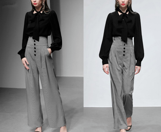 一般下衣高腰的设计,除了凹显高腰线,塑造出色身材比,达到显高的作用外,还可以隐藏遮挡腰部和小肚子上的赘肉,以及将视线焦点上移,转移对腰部的注意力,达到遮肉显瘦的效果。