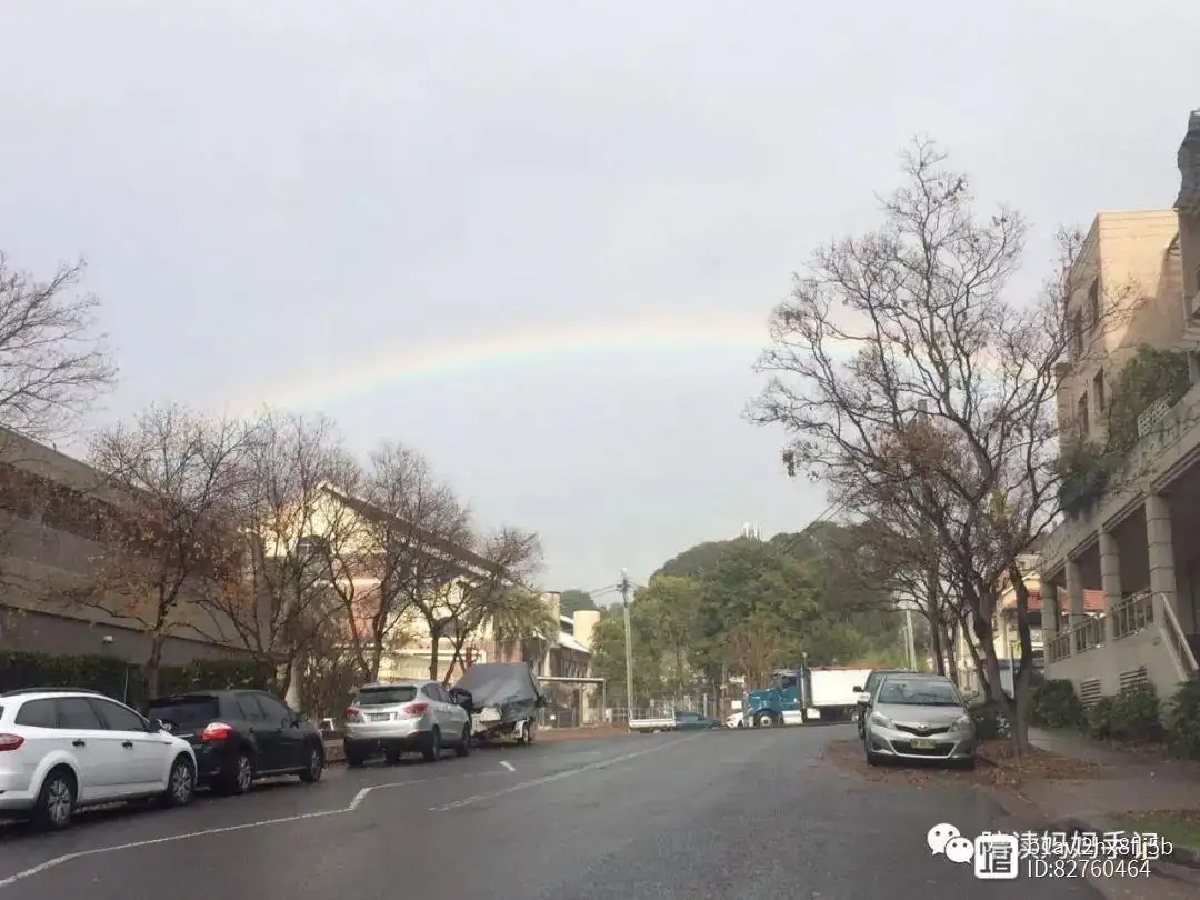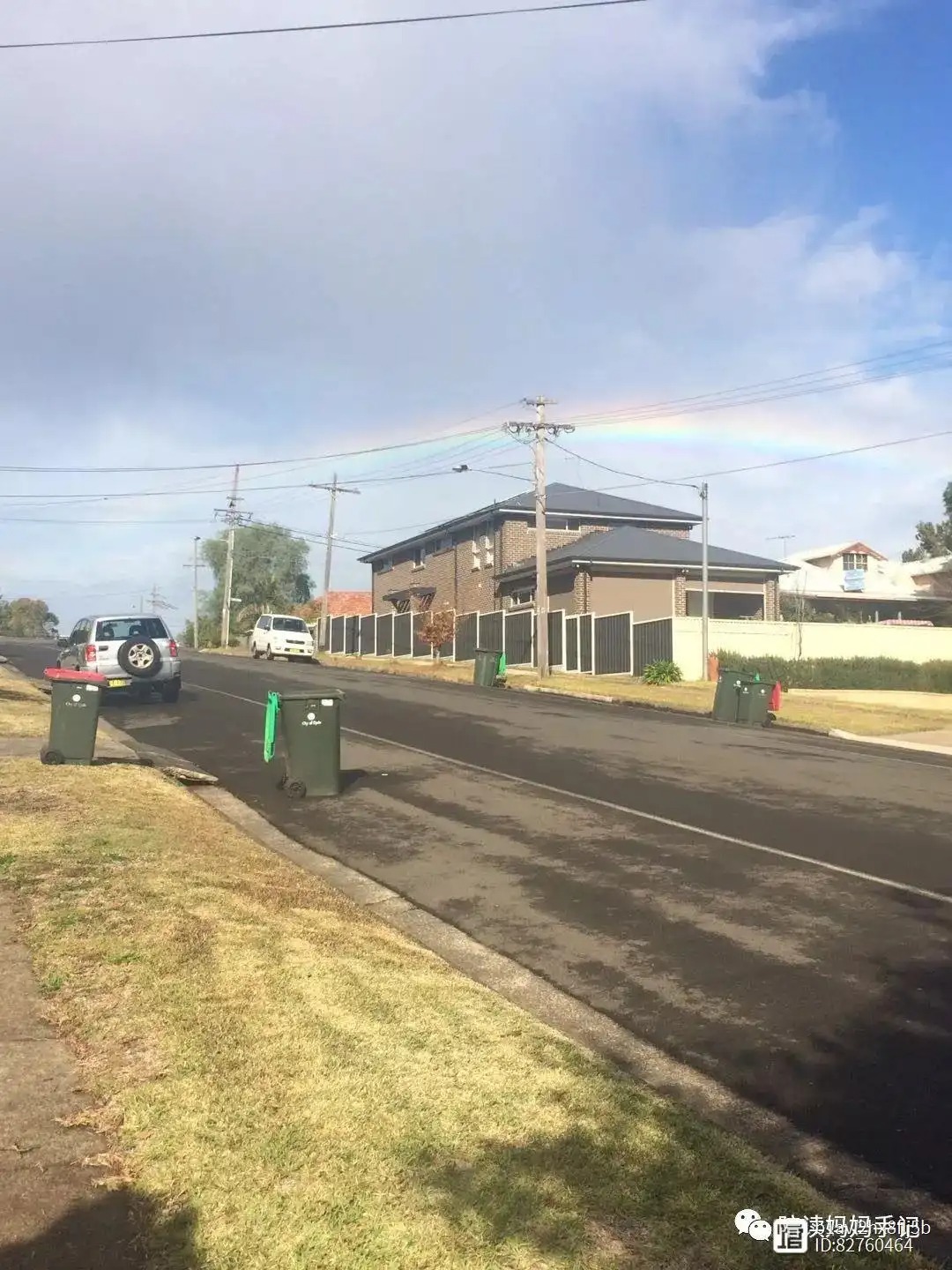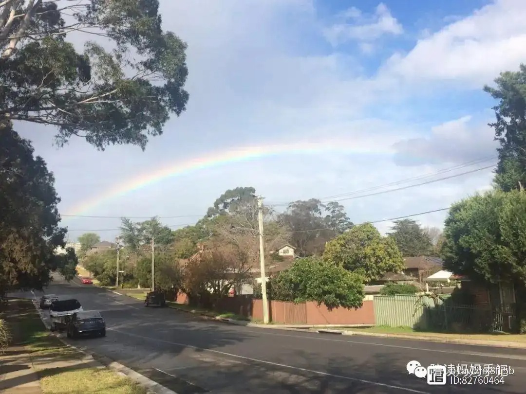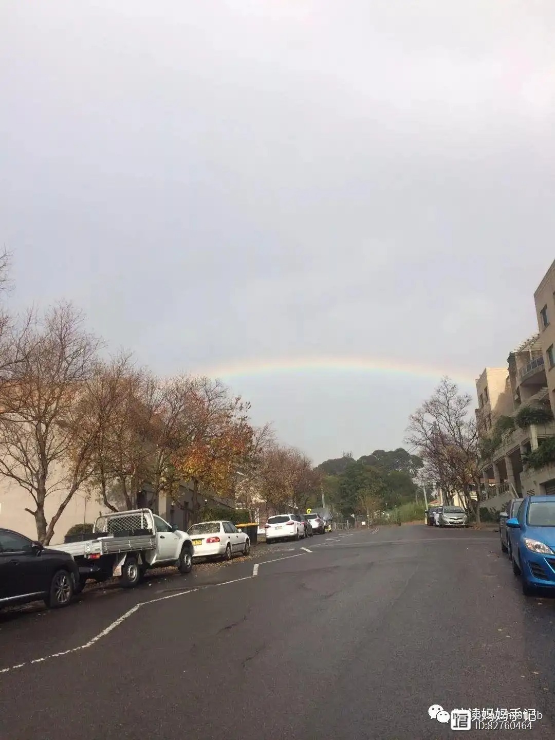 早上下雨,一道彩虹挂在天上。中午下课回家,太阳出来了,仍然一道彩虹。送给大家,所有愿望都实现,见者有份。