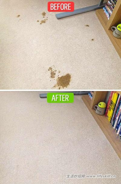 把醋和水用1:2的比例调配,装到喷雾瓶里面。把调配出的醋水混合液喷到地毯上,然后拿熨斗来烫一下,地毯就会恢复原本的模样了!