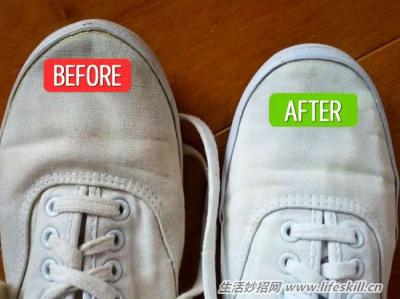 把洗碗精、双氧水、小苏打用1:3:2的比例调配,就能把鞋子改造成一双全新的帆布鞋。