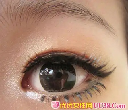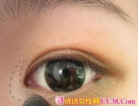 步骤五:深棕色的眼影涂抹在眼睫毛根部以及眼尾处和下眼睑的位置上。让晕染的效果更好的凸显出来。#p#副标题#e#