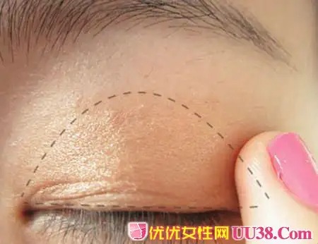 步骤四:用咖啡色打底,在整个眼窝处,用中指的指腹或者是眼影刷都可以。#p#副标题#e#