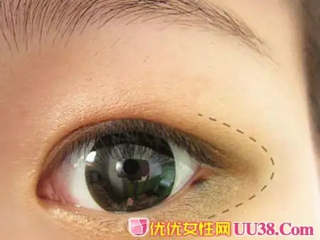 步骤六:用浅色的眼影涂抹在眼头的位置,有开眼角的效果,眼睛更大更亮。#p#副标题#e#