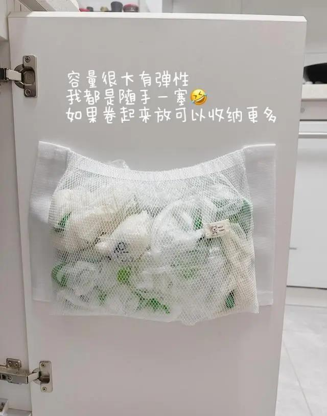 2. 塑料袋塞网兜太常见,关键在“挂哪里”。