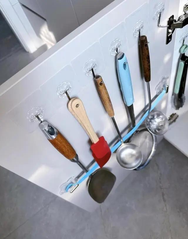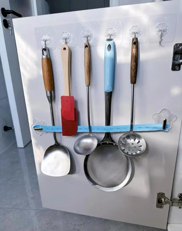 4. 柜门内侧贴3M无痕胶挂钩,小刮皮、开瓶器一字排开,单门负重不超过1kg,铰链用十年不歪。