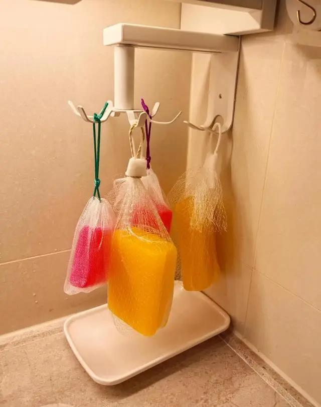 6.肥皂湿哒哒,用水果网袋套是老法子,升级版是双层硅胶网袋,起泡量翻倍,肥皂消耗速度降40%,一块香皂多用一个月。