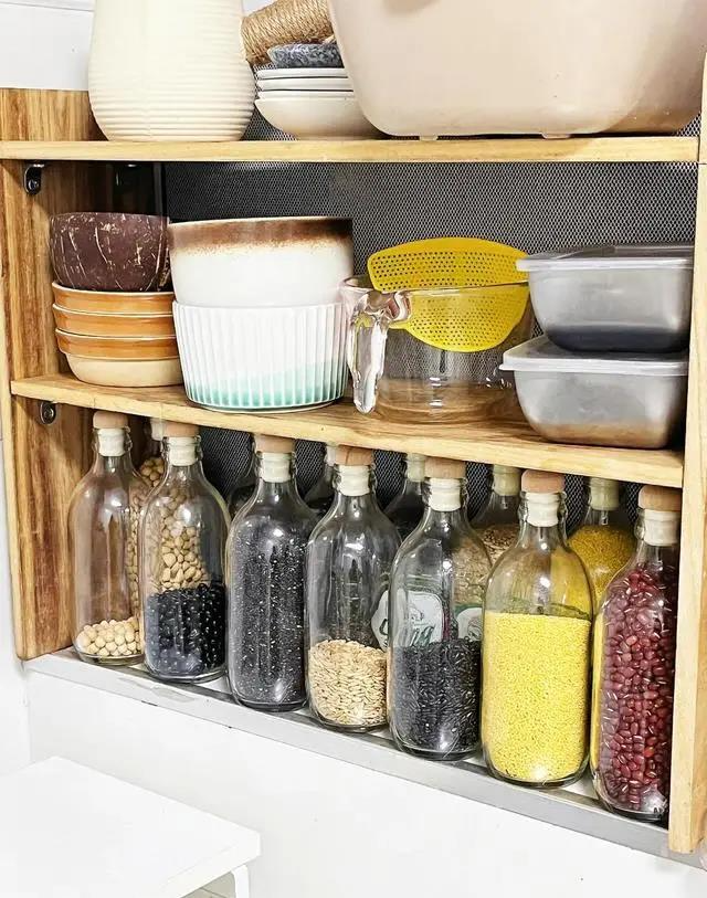 淘宝爆款“旋转式挂架”装在吊柜底部,360°转一圈,咖喱粉还是辣椒粉一秒锁定。