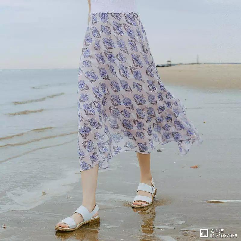 轻盈雪纺半身裙,有序的花朵印花,素雅不挑人。裙摆不规则对称的设计加上两侧开叉的设计,随风而动式更多了份灵动复古的情怀 ,只需简单配纯色上衣,清爽又美腻。