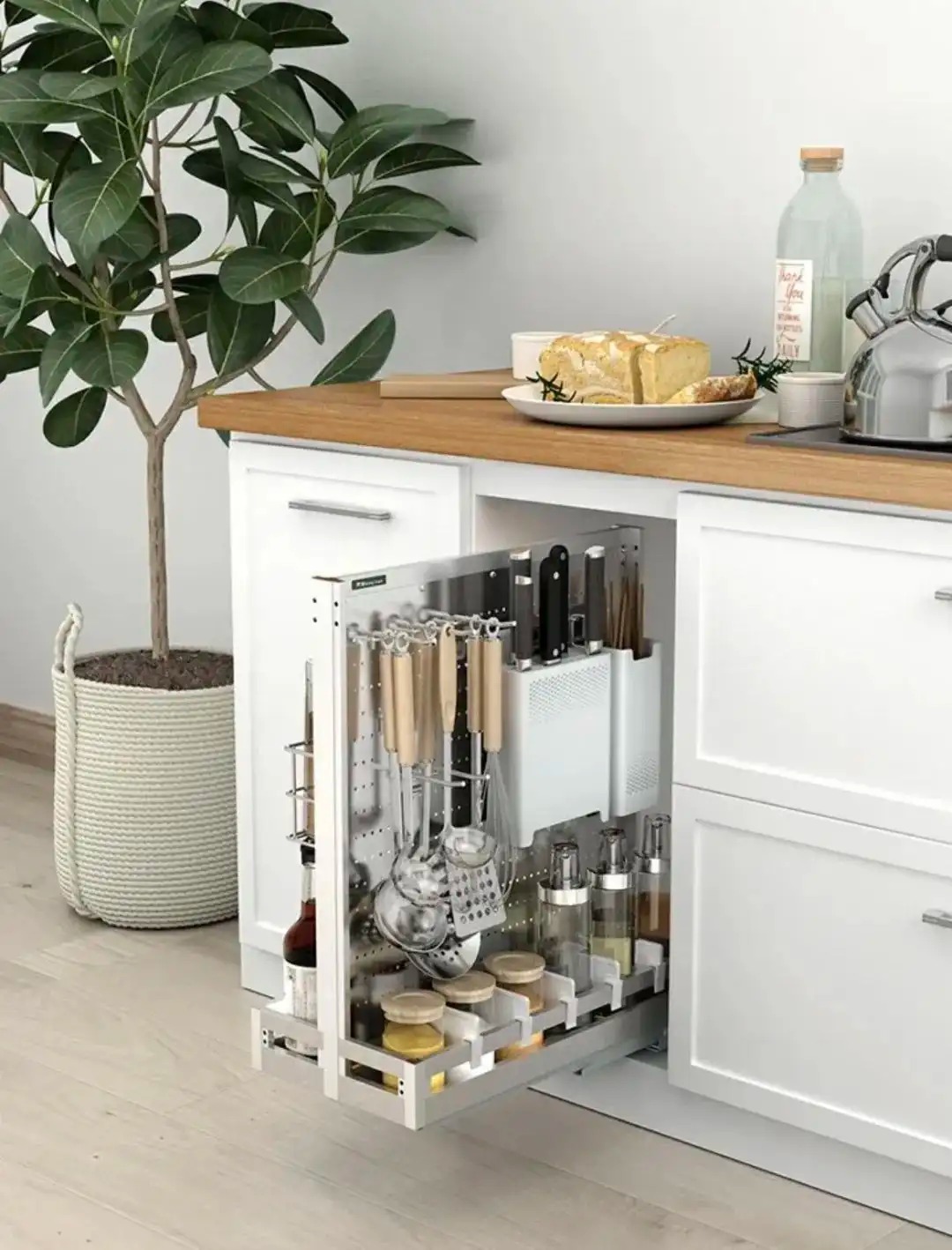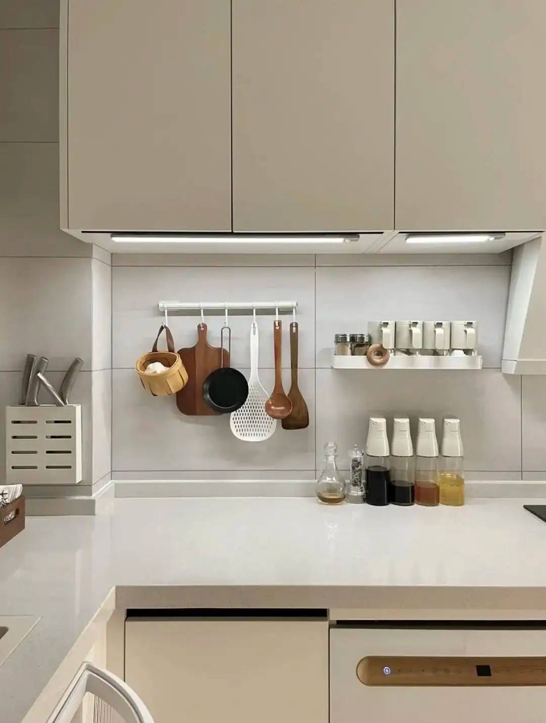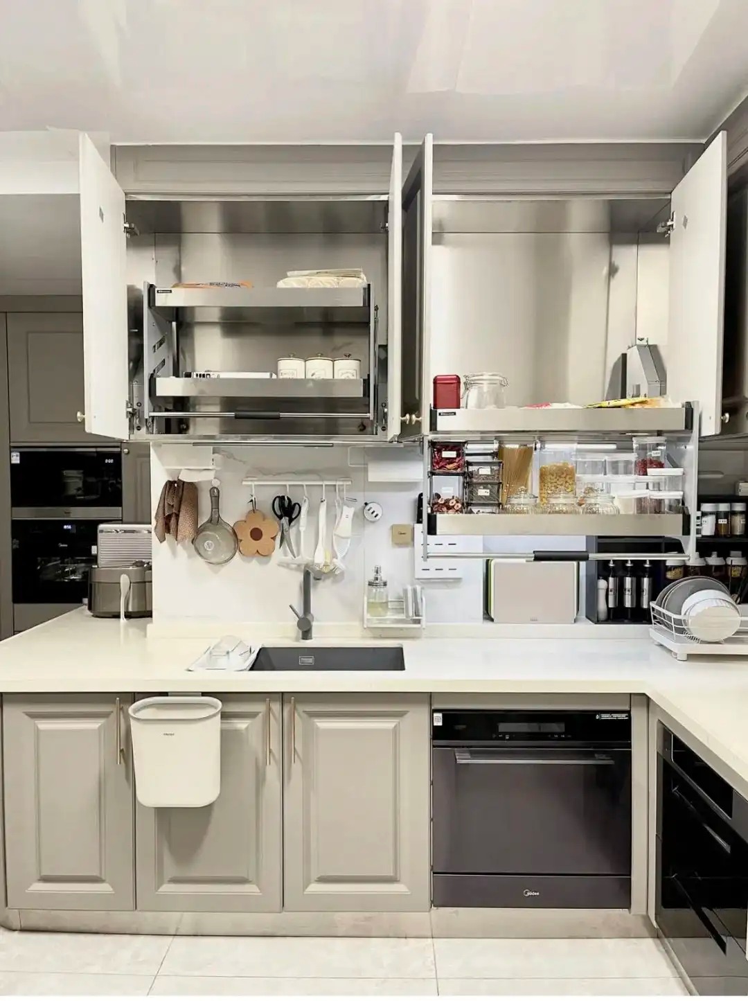 这样当我们寻找物品时,所有物品抬手就能拿到,同时厨房台面也都空出来了,做菜再也不慌乱~