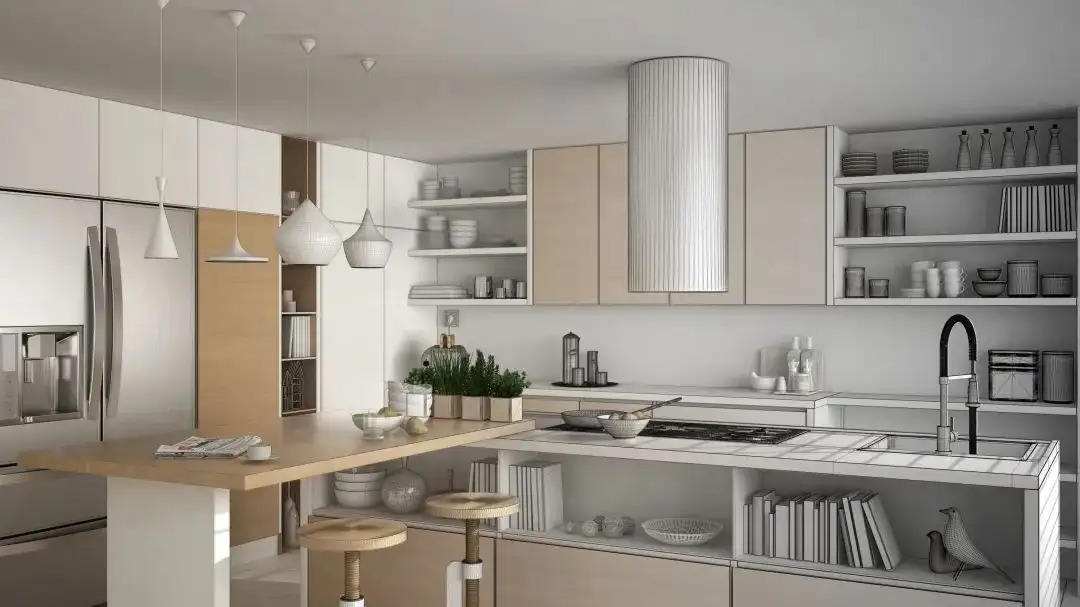 那作为家庭空间使用率最高的区域之一,厨房的各种小物件都非常多,同时也对收纳以及动线有着更高的要求。