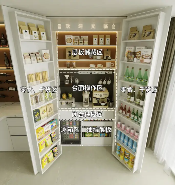 ✔ 餐边柜:水吧隐藏在柜里,视觉上更干净;