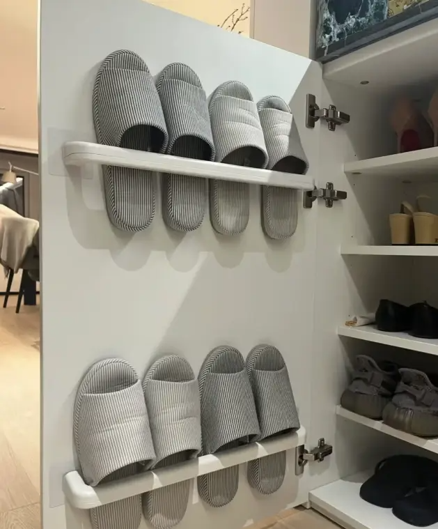 📌 在柜门上加个架子,专门放轻便的拖鞋、儿童鞋,或者清洁工具。