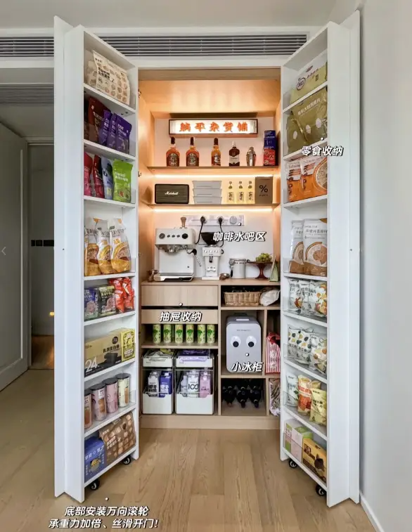当代网友真的很聪明,为了解决这个问题,直接借鉴了冰箱的设计——把深柜做成“冰箱式储物柜”。