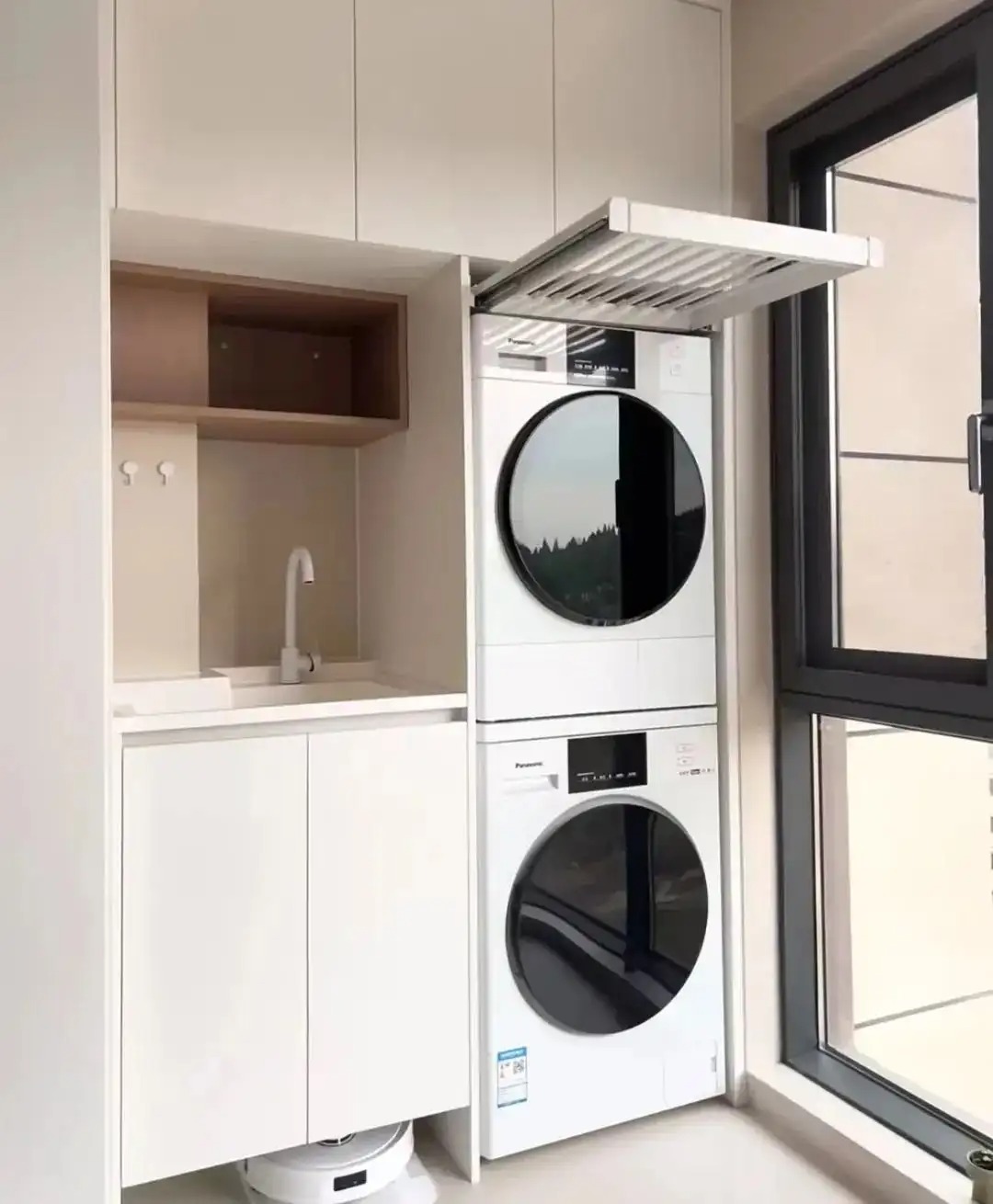 📌 洗衣机+烘干机,动线合理,洗烘一步到位。