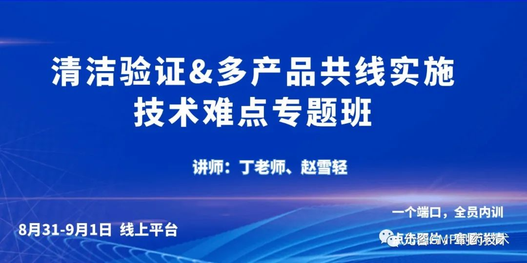 8月31-9月1日,线上课程系统性解决清洁工艺研发到技术转移,最后到商业化生产过程中清洁验证及多产品共线的难点及重点问题,有效提升清洁验证执行的合规能力。
