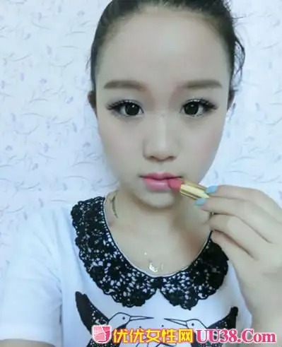 步骤十二:最后取一款粉色的口红涂抹在嘴唇上,再用一款唇彩上一层淡淡的,这样就会显得水当当的。#p#副标题#e#