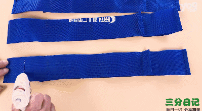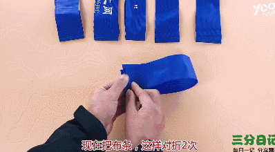 把布条往中间对折两次,用力压出折痕。还原布条,在布条内部折痕处用热熔胶贴起来,或者用针线缝几针。每个布条都要重复这个步骤哦!
