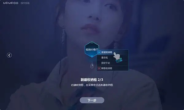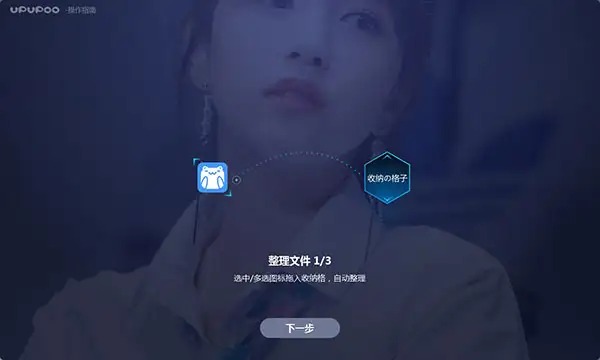 2、双击运行"upupoo-docker.exe"程序可直接启动主程序,会弹出相关的引导提示教你如何进行操作,如选中/多选图标拖入收纳格中;