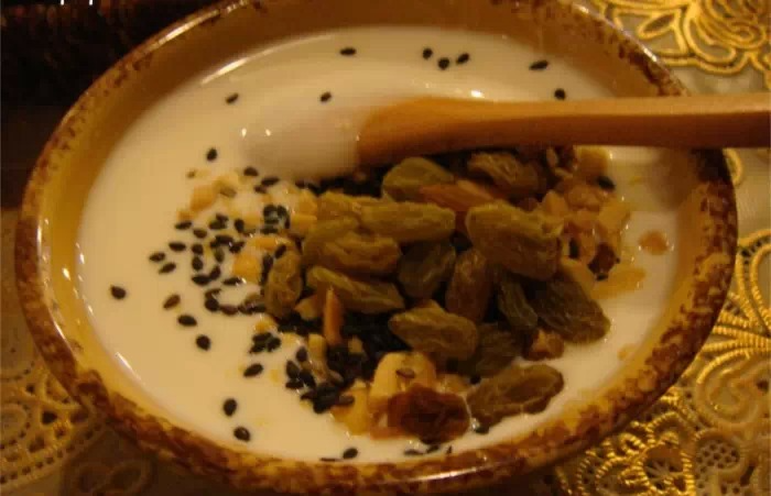 降压食谱二:200毫升酸奶+25果仁。每天食用一把坚果,可以补充足量的镁,辅助调节血压。