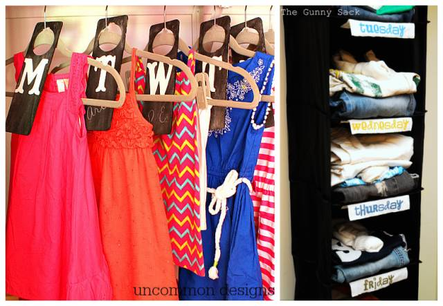 衣柜收纳挂袋或者做了标签的衣架,都可以用来规划周一到周日的着装计划,不管是给熊孩子还是自己都很实用。