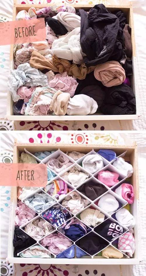 如果房间空间并不大,门后挂一个大型收纳袋用来装内衣袜子Bra打底裤丝袜啥的简直不能更棒。