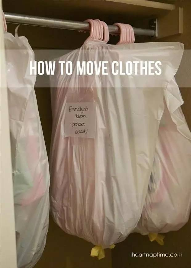 搬家时候是不是觉得大衣柜里的衣服好多好难搞?直接拿袋子套起来到新家一起挂起来就好啦。